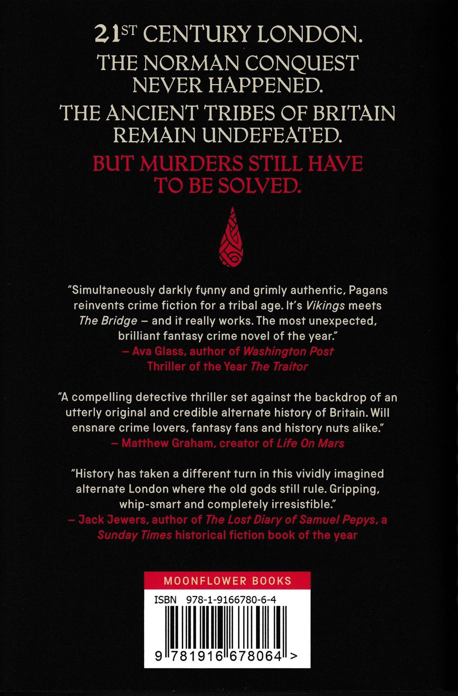 Pagans blends fantasy with alternate history and crime fiction, with a police procedural theme, featuring a modern day London with Celtic/Saxon tribal societies. Detectives solve murders with modern technology amidst ancient tensions