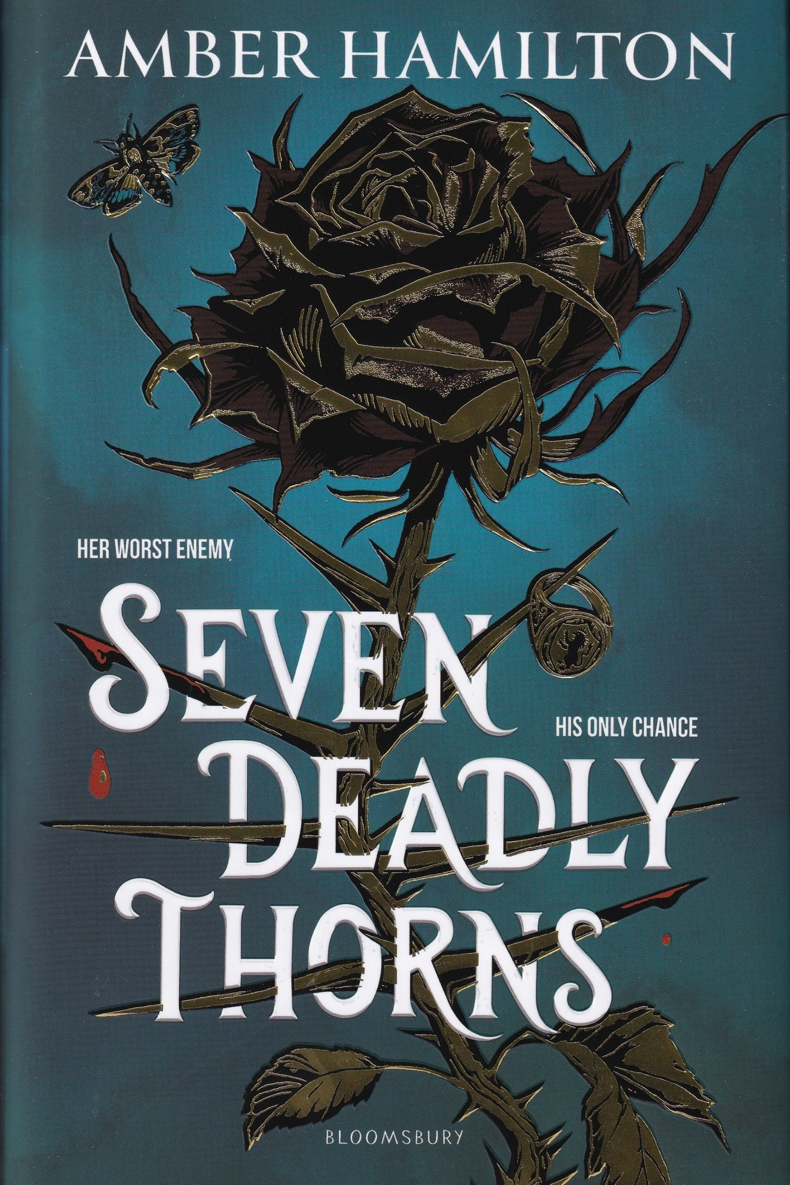 Seven Deadly Thorns by Amber Hamilton, a YA Romantasy novel featuring elements of Dark Academia, Magical Romance, and an Enemies-to-lovers romance.
